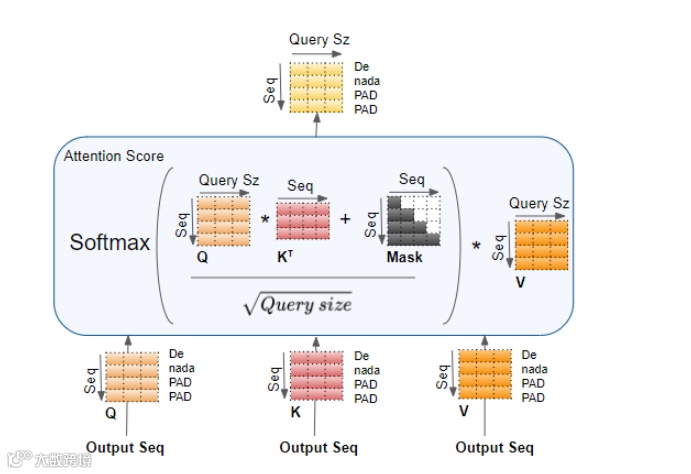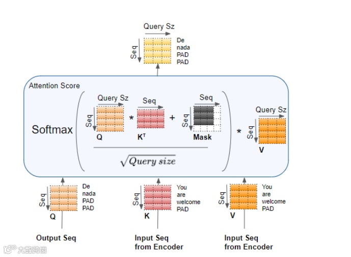 同样,掩码mask也会屏蔽掉目标输出中后面的单词,这在本系列的第二篇文章中有详细说明。