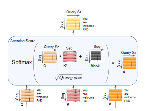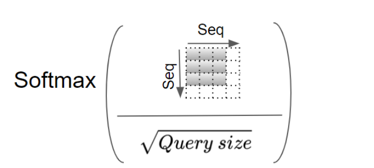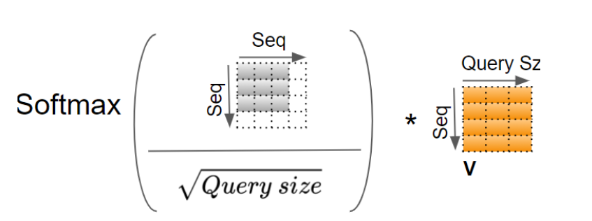 我们将仅使用后两个维度(seq_len和query_size)来显示单个head的计算过程,而跳过前两个维度(batch和heads)。从本质上讲,我们可以想象,我们正在查看的计算正在 "重复 "批次中的每个头和每个样本。