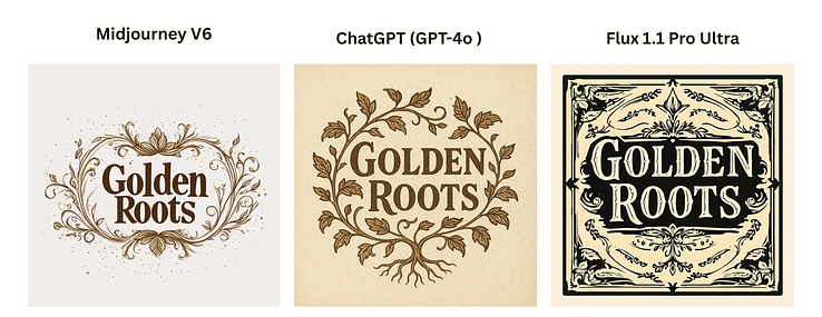 Prompt: A vintage logo design featuring the brand name “Golden Roots“ in a retro serif font. The logo includes ornate details like vines and leaves, with muted earth tones. The design has a hand-drawn, artisanal feel.