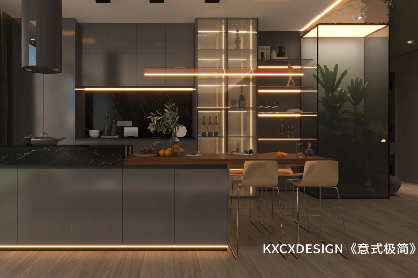 本案的极简设计风格及通过色彩的反差碰撞融入了新的灵魂,整体设计上融入了大量的新材料亚克力家居及波纹不锈钢板的设计,给人一种展厅、大宅的既视感。