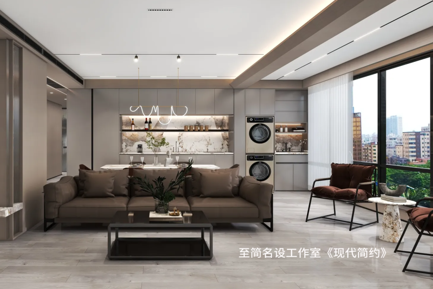 本案简约却不失优雅,全屋色系的搭配给人一种温馨的舒适感,无主灯的设计也是