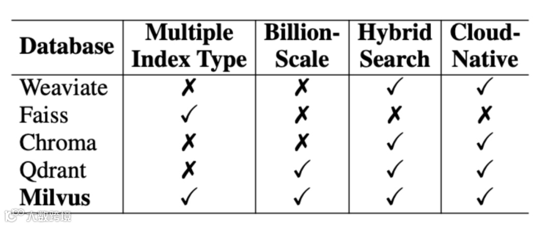 对比观察,Milvus 在接受评估的数据库中脱颖而出,不仅符合所有基本标准,而且在性能上优于其他开源选项。