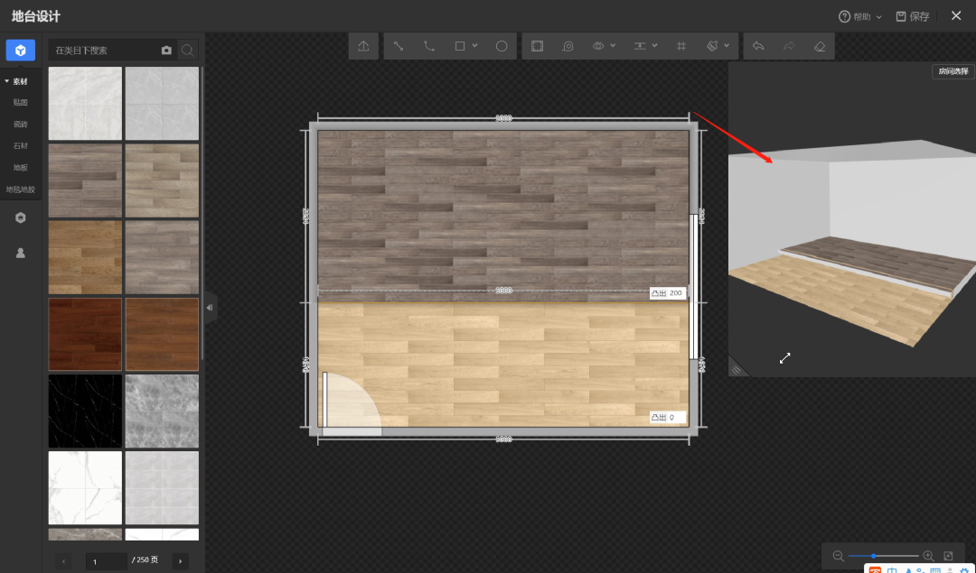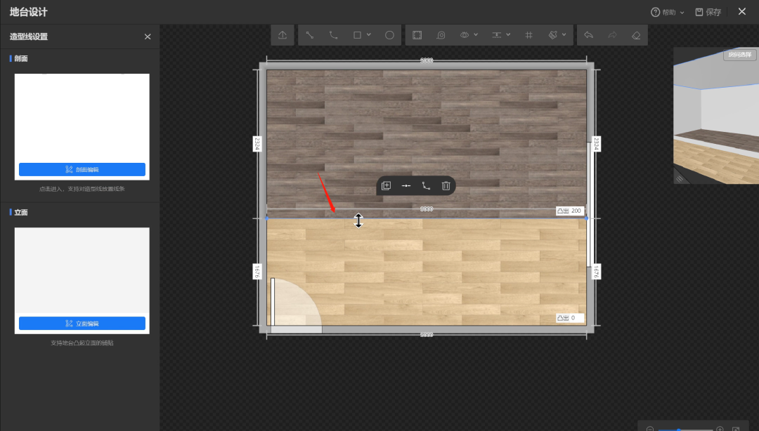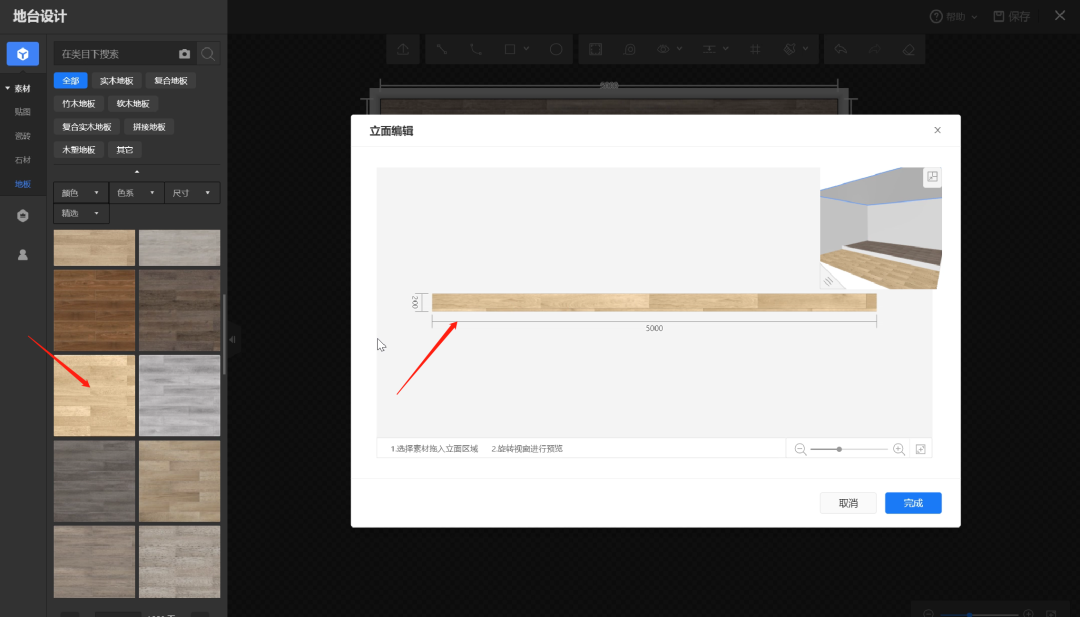 Step4:用3D界面检查一下铺贴的情况,并给立面添加材质和设置灯带