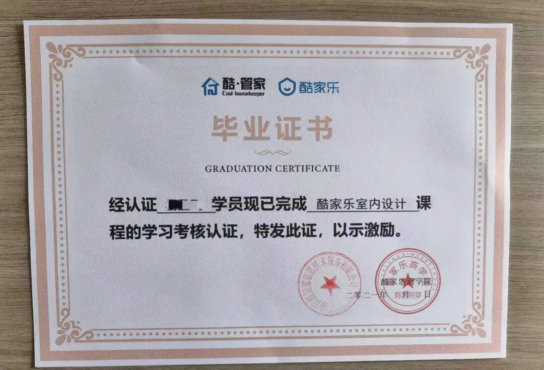 1.酷家乐官方颁发的培训授权牌和联合认证学员毕业证书