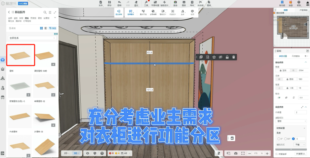 ③点击选择-组件库-板件-层板-插入横板与竖板