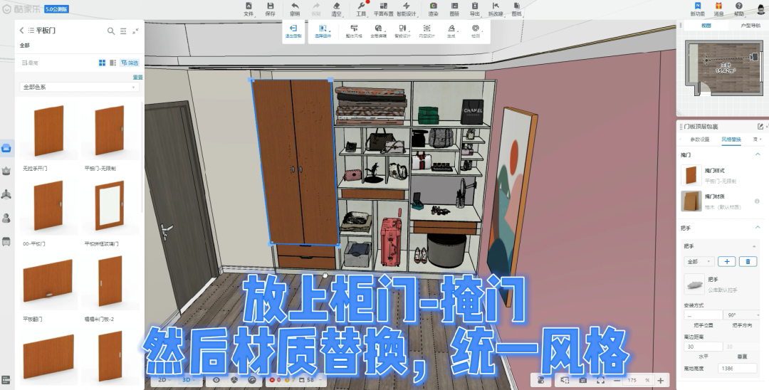 ④组件库-选择功能五金-查看全部-选择挂衣架-调整合适高度