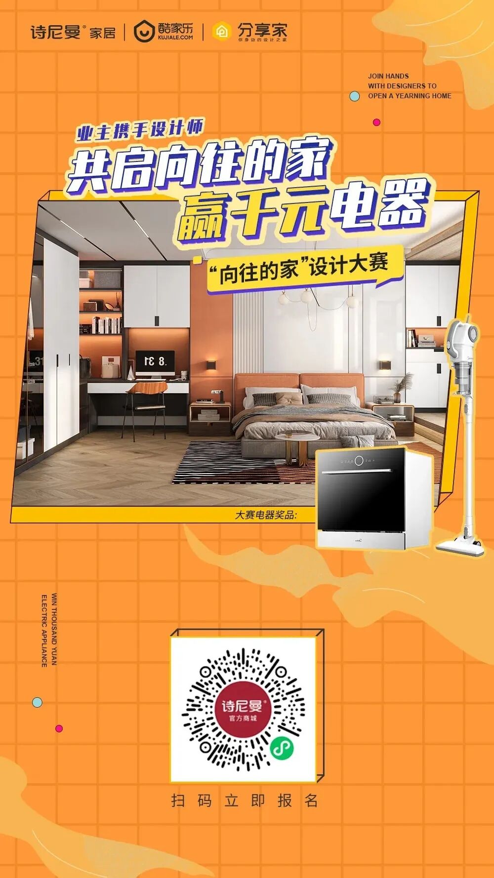 在10月份我们联合酷家乐举办了“向往的家”设计大赛,大赛采用由业主报名,设计师设计方案的创新设计大赛形式。大赛还设立价值30万元的奖品,充分调动双方积极性。在活动中业主报名留资后,设计师开始设计方案,完成后投稿至诗尼曼分享家后台。