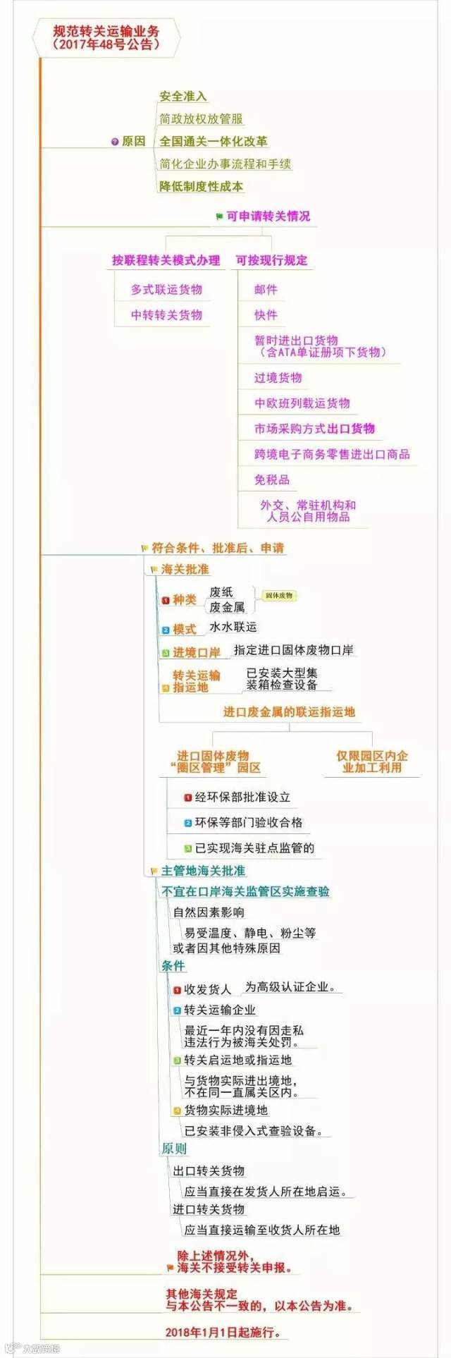 2017年10月11日,海关总署发布2017第48号公告,自2018年1月1日始,除特殊的几种业务类型外,取消转关申报模式。企业只能采用通关一体化方式或直接到进出境口岸清关。