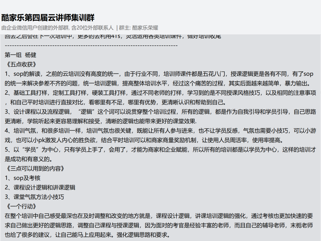 本次集训的结业典礼如期在8月3号15:30准时举行。通过4天的学习和训练,集训组委会根据平时的积分排名评选出了第一名优秀小组,并且邀请了酷家乐副总裁兼客户成功部负责人之余给优秀小组颁奖致辞;最终有14名云讲师顺利通过本次考核,获得了酷家乐商家学习中心荣誉通关证书;至此,酷家乐商家学习中心第四期云讲师集训正式圆满落幕。