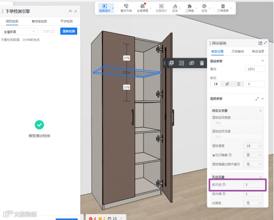 说明:【全部校正】,层板会自动前内缩5mm,无需在而外设置前内缩值。