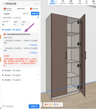 顶固DSM营销服务平台当门板配了拉直器而层板未内缩避开拉直器,检查会出现规则检查报错。
