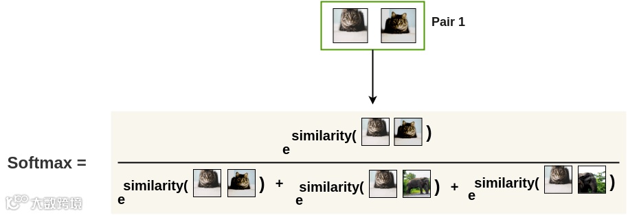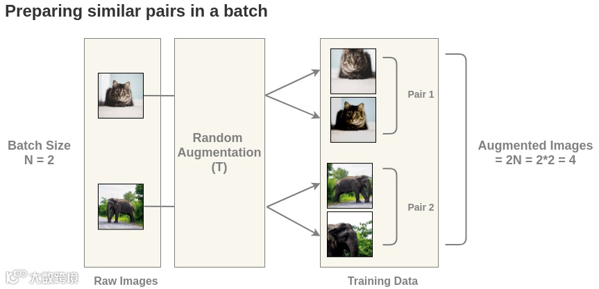 该softmax计算等效于获得第二张增强后的猫图像与该对中的第一张猫图像最相似的概率。这里,该批次中的所有剩余图像都被采样为不同图像(负对)。因此,我们不需要以前的方法(如MoCo)所需的专门架构、或队列。
