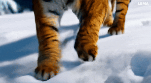 结果与提示词保持一致,视频质量也不错。不过,老虎没有在雪地上留下爪印,这有点奇怪。