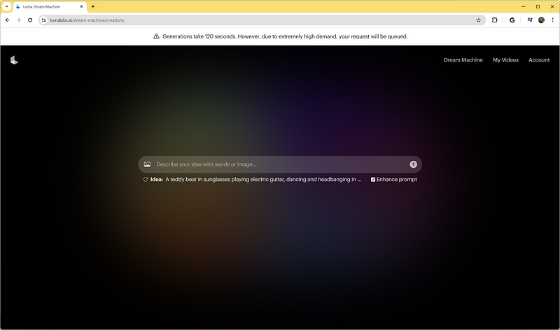 创建账户后,大家就会看到一个文本框,在这里你可以描述想要生成的视频。