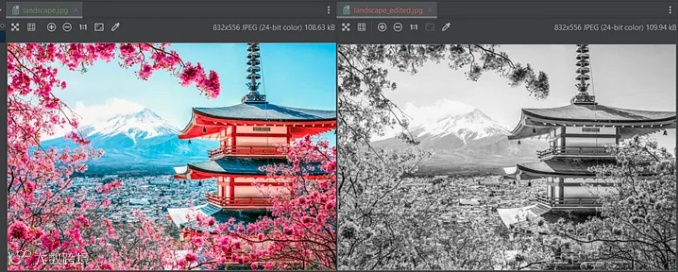 rom PIL import Imageimg = Image.open('./landscape.jpg')width, height = img.sizeprint(width, height)new_img = Image.new('RGB', (width, height))for row in range(0, height):for col in range(0, width):(r, g, b) = img.getpixel((col, row))avg = int((r + g + b) / 3)new_img.putpixel((col, row), (avg, avg, avg))new_img.save("landscape_black_and_white.jpg")