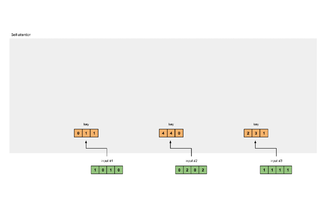 # init weight for keyw_key=[[0, 0, 1], [1, 1, 0], [0, 1, 0], [1, 1, 0]] # init weight for query w_query=[[1, 0, 1], [1, 0, 0], [0, 0, 1], [0, 1, 1]]