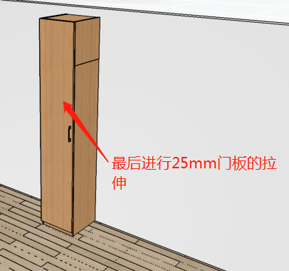 放置超高25mm门板时,需先放置再选择25门板款式最后拉伸高度才能画出来,直接放置超高门板将无法放置;正确操作如图: