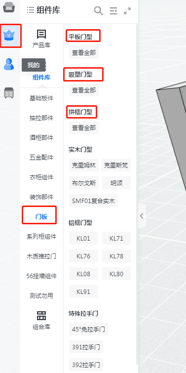 合并后此三类门板不再以系列区分模块,门板选项也比以前简洁了,具体如图所示:
