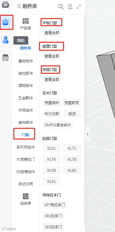 为让前端设计师更简易地做效果图与下单,特此,酷家乐后台把原组件门板库平板门型/拼框门型/吸塑门型模型合并统一