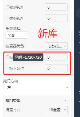 门板上下延伸:旧库门板上下延伸不能做负值,新库门板可做负值延伸,如图: