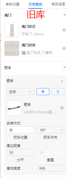 拉手位置调整同旧门板一致,可多选门扇修改安装方向调整垂直高度数值即可;如图: