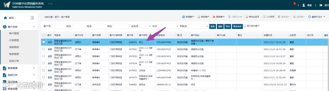 登录DSM账号进入系统;在系统主页界面左边菜单栏点击【客户关系】,展开层级中点击【客户管理】切换到客户管理界面;在客户管理界面上方菜单栏点击【新增客户】弹出新增客户窗口,填写完整客户信息,点击保存。