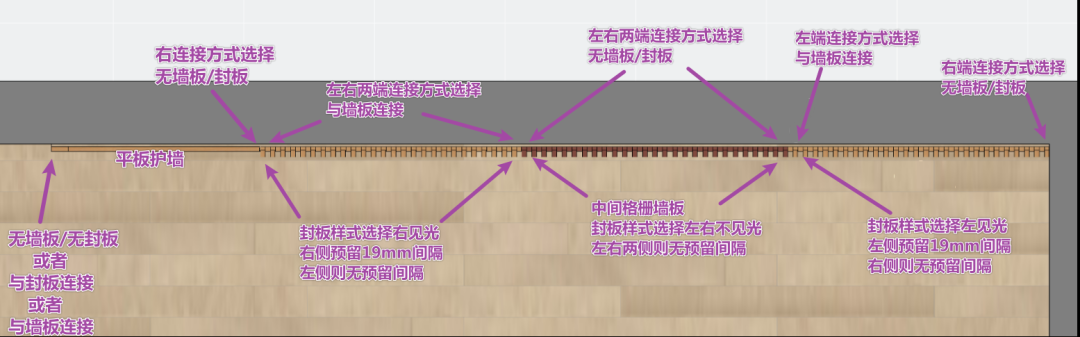 左右不见光:选择此选项,护墙板左右不预留间隔;