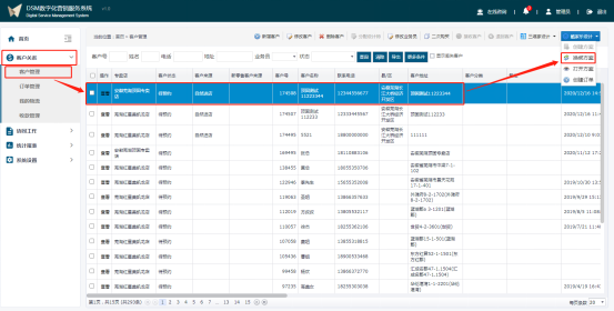登录DSM平台,在左侧菜单栏点击[客户关系],继续点击[客户管理];