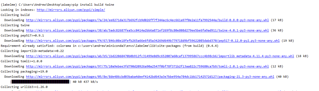 我们需要用到上述两个包来将我们的测试包推送到PyPI。安装过程如下: