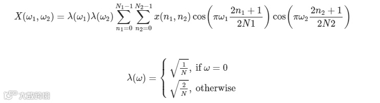 一般来说,二维离散余弦变换的定义由如下公式表示: