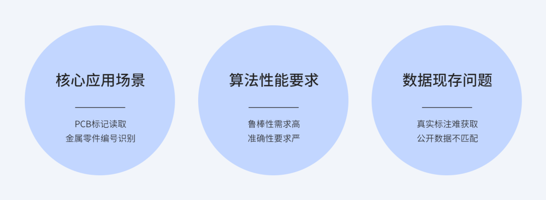 工业视觉字符检测与识别是智能制造、质量控制、追溯体系的核心技术支撑,其应用覆盖印刷电路板(PCB)组件标记读取、金属零件编号识别、工业面板状态监测、品牌标识验证等多个关键环节。与传统自然场景文本识别不同,工业场景对算法的鲁棒性、准确性、实时性提出了更高要求:一方面,工业图像常面临低对比度、不均匀光照、字符腐蚀/变形、复杂背景干扰等问题,导致传统光学字符识别(OCR)方法无法满足精度需求;另一方面,工业场景的数据具有稀缺性与非均衡性——真实标注数据难以获取,而公开数据集往往无法覆盖特定工业场景的字符样式(如特殊字体、微小字符、异形文本)。例如,PCB组件的文本标记因焊接工艺、材质反光易产生模糊或断裂,现有模型直接训练时漏检率高达30%以上1;金属零件表面的锈蚀字符则因纹理混淆,导致候选框定位误差超过像素级2。这些问题倒逼算法向数据增强、特征优化、后处理细化方向演进。