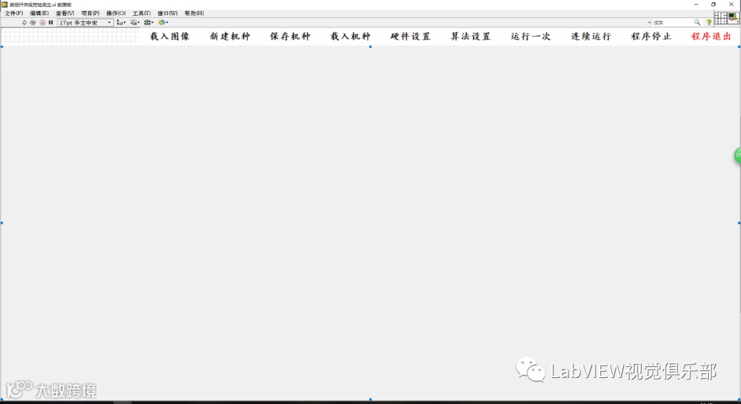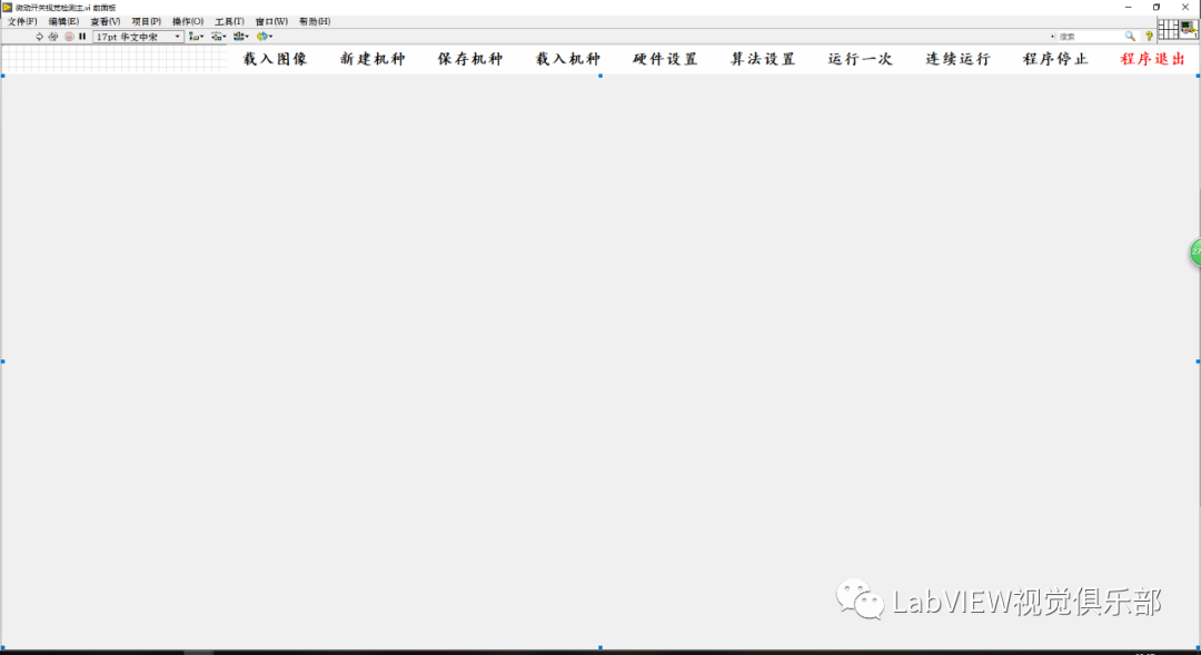 上期利用视觉助手模拟了项目中所需的视觉部分算法,分别有灰度分析,二值,滤波,凸包,颗粒分析,卡尺检测。本期我们进行软件部分的界面设计,以及框架的搭建,为后期编写做好基础。