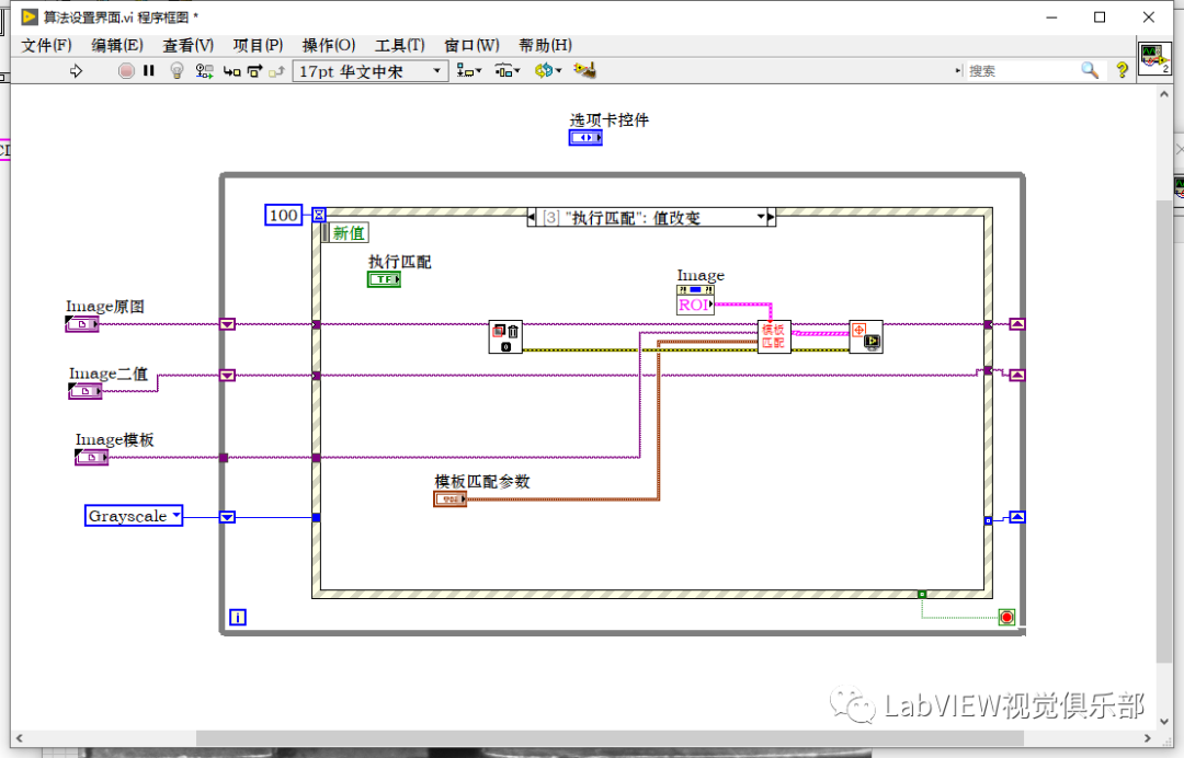首先创建设置界面子VI,利用事件结构进行算法激活,单个算法进行VI封装,保留需要设置的参数项,如下图: