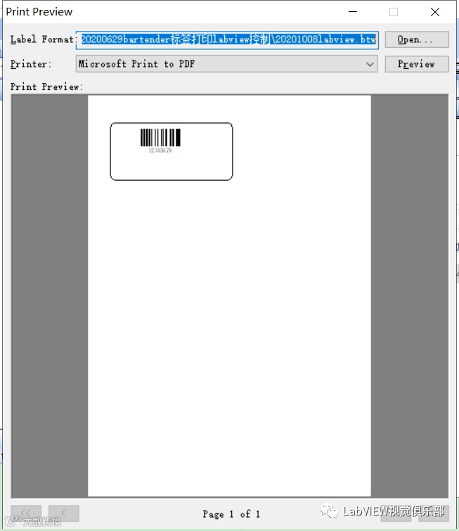 4.labview实现,通过调用E:\Program Files (x86)\Seagull\BarTender Suite\SDK\Assemblies中的Seagull.BarTender.Print.dll实现btw文件的预览。