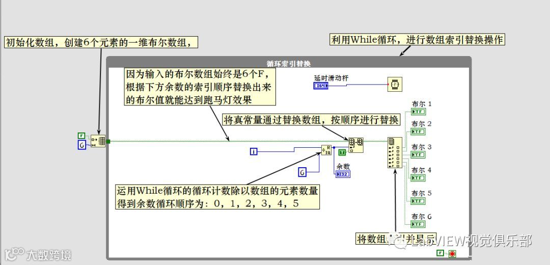 程序要求,多数布尔灯依次排序,按照从左往右的顺序进行亮灭操作。