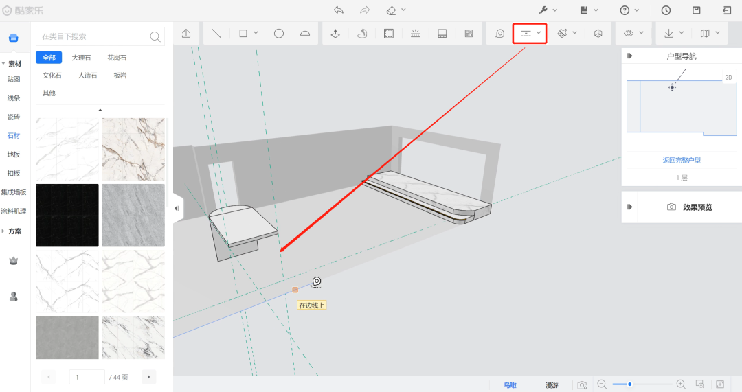 进入2D界面,点击添加参考线工具,在地面参考线确定区域位置。
