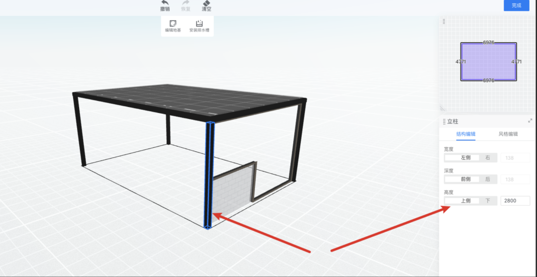 3.立柱的抬高也是可以自由设置的,选中立柱,在右侧面板可以修改。