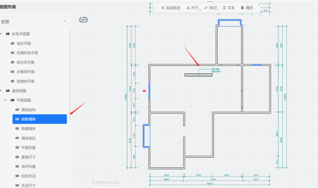 3.进入视图管理器,在平面视图下-拆改墙体、新建墙体,都能明确看到尺寸啦