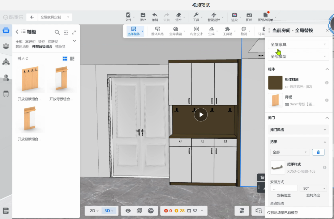 Step8 替换材质: 最后一步,按照客户想要的样子替换材质即可,可以选择材质颜色、把手样式等。