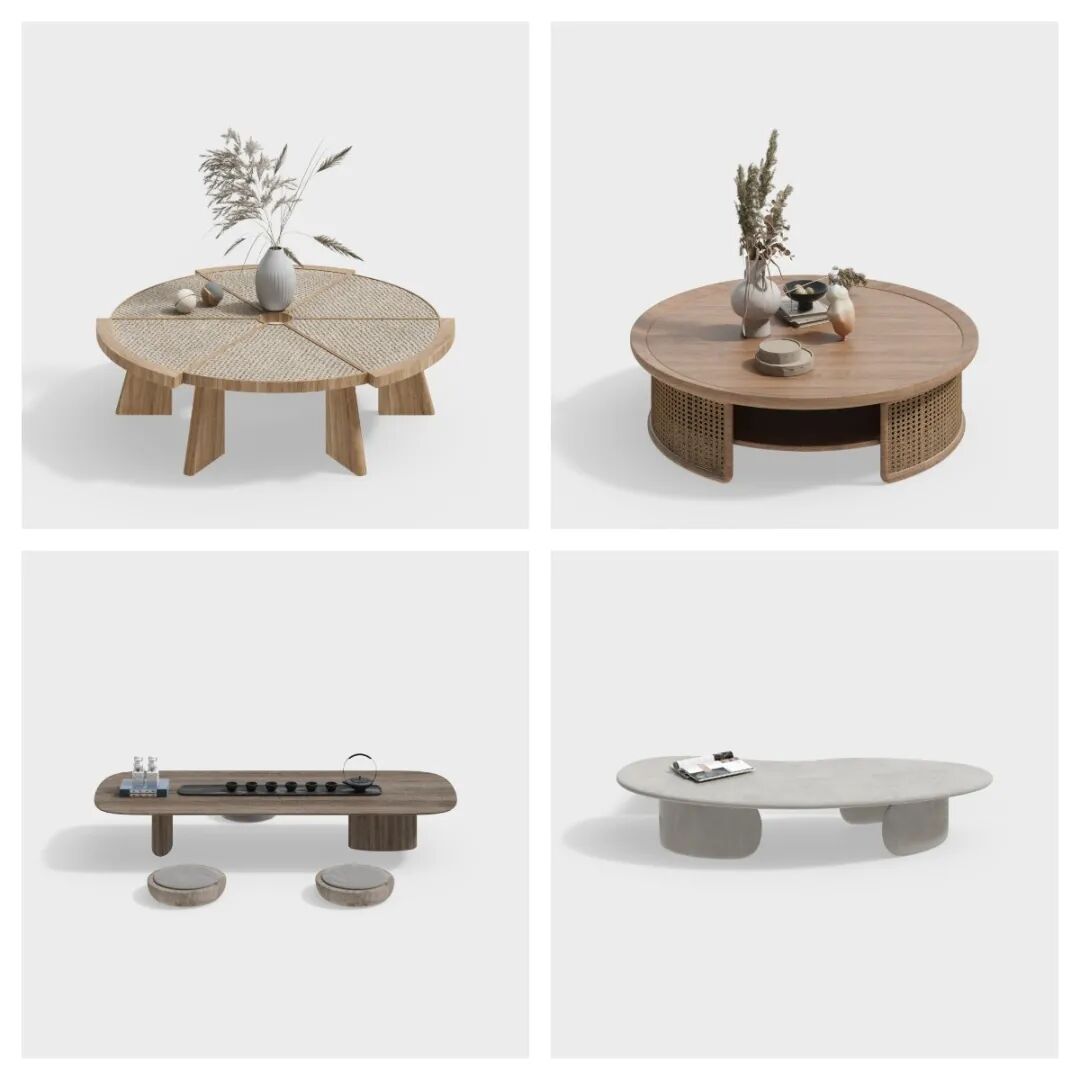 本次家具类别更新内容中,以侘寂风格的家具为主。色彩素雅高冷,枝粒分明,具备东方禅意的深沉韵味。一方天地,快慢有度,动静皆然。