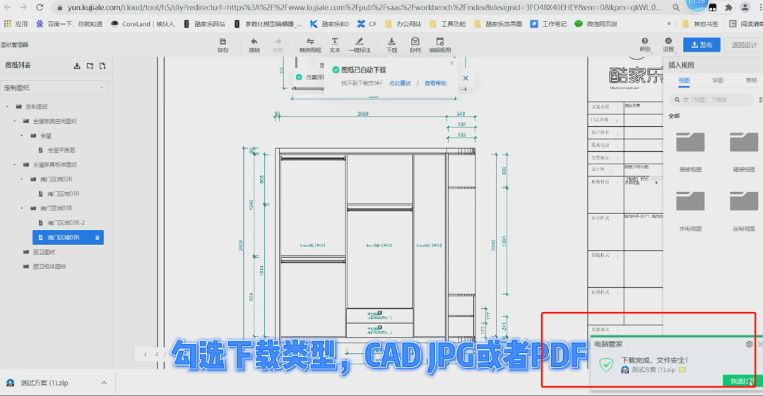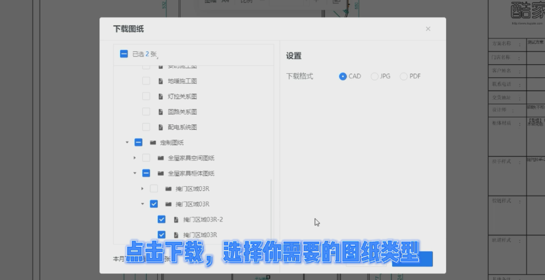 Step6:点击下载,并选择需要的图纸类型,可以选择JPG/PDF/CAD