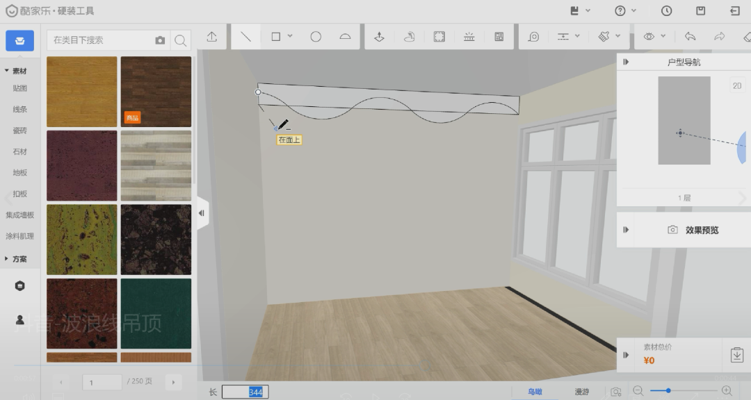Step8:按住shift点击吊顶区域点击组合按钮,然后在左侧选择材质添加就设计完成了!
