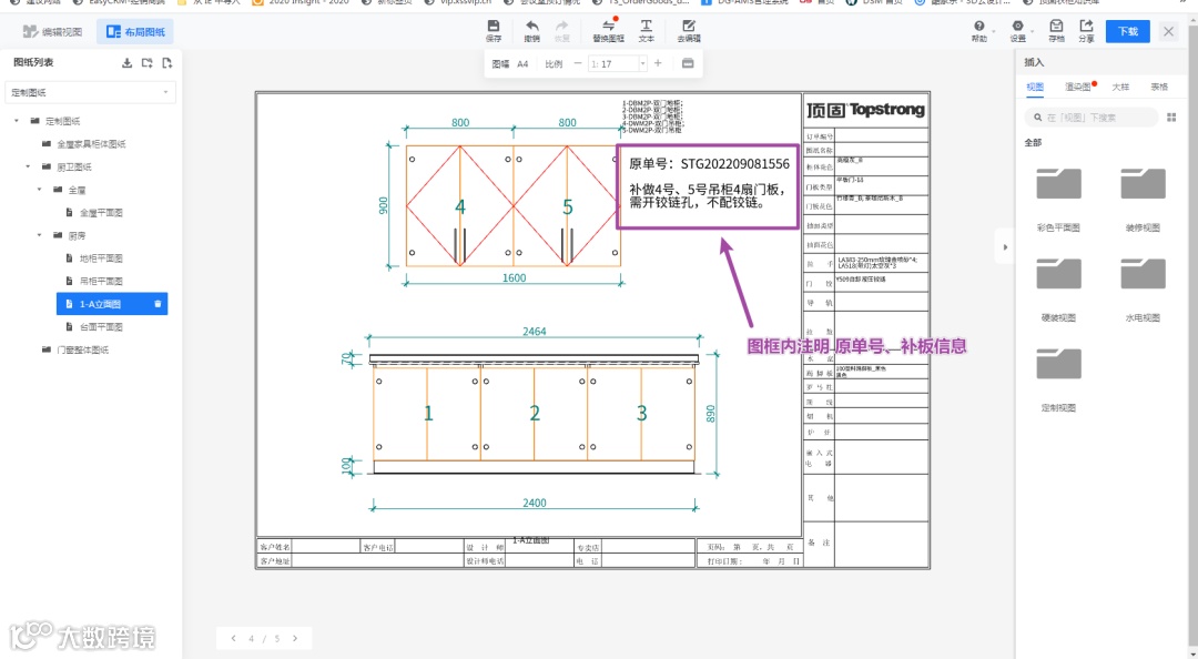 注意:出图时,需在图框内注明原单号、补板下单信息。