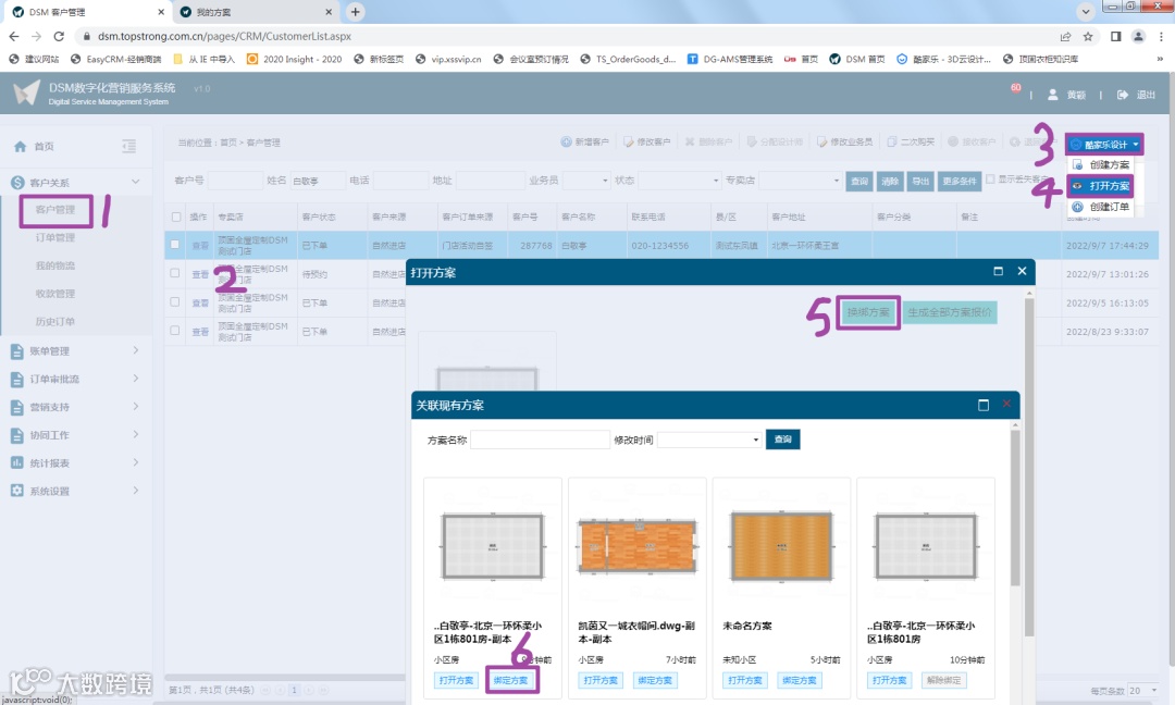打开DSM系统进入客户管理,找到原单客户,绑定上一步复制的原单方案副本。