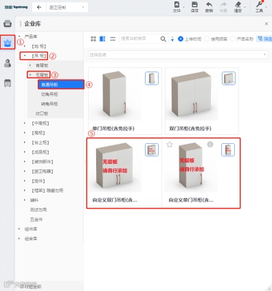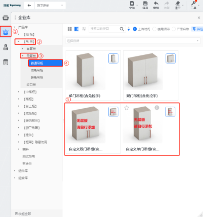 厨卫定制—企业库—产品库-吊柜-无背板-普通吊柜-自定义双面吊柜(含免拉)/自定义单门面吊柜(含免拉)