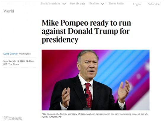 而关于“和特朗普竞争”的消息,《泰晤士报》称消息源来自蓬佩奥身边的一位“知情人士”。另一则消息源提到,特朗普将在11月的中期选举前宣布自己参加2024年大选的消息,但蓬佩奥则决定在中期选举后做出最终决定。