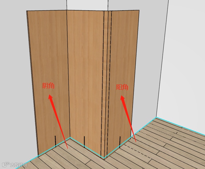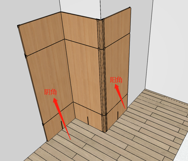 最左/右端连接为收口线,墙板的最左/右端显示为直角,如图: