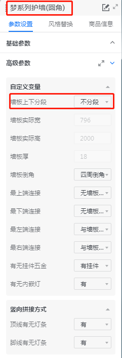 高级参数中的自定义变量的墙板上下分段参数设置对比图: