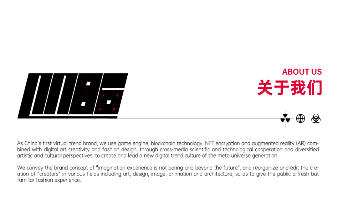 0086Studios作为中国首个原创虚拟潮流品牌,我们利用游戏引擎、3D动画制作、区块链技术、NFT加密方式及增强现实手段(AR)结合数字艺术创意和时尚设计,通过多元化文化视角和跨媒介的艺术科技协作,创造并引领元宇宙世代的时尚潮流文化,成为连接虚拟与现实世界之间的重要桥梁。我们传递着“想象力 体验感 不枯燥 超未来”的品牌理念, 通过集合包括艺术、设计、影像、动画、建筑等各领域「造物主」的创作进行编辑与重组成为一个全新有趣且迷人的虚拟潮品,建立一个虚拟视角下与Z世代消费者多样性联系。