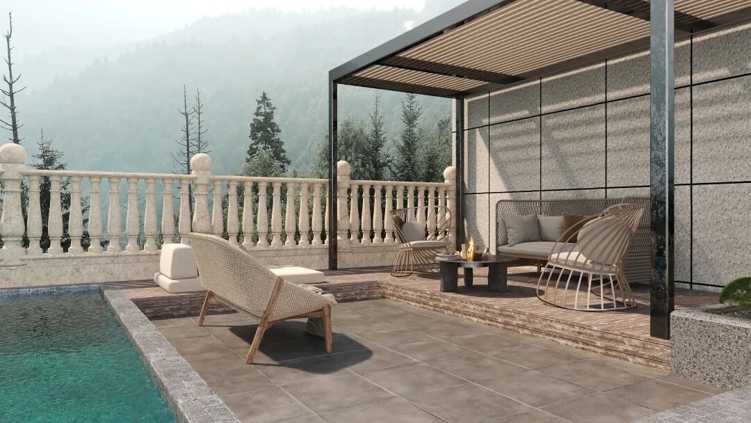 模型特点:户外桌椅/泳池